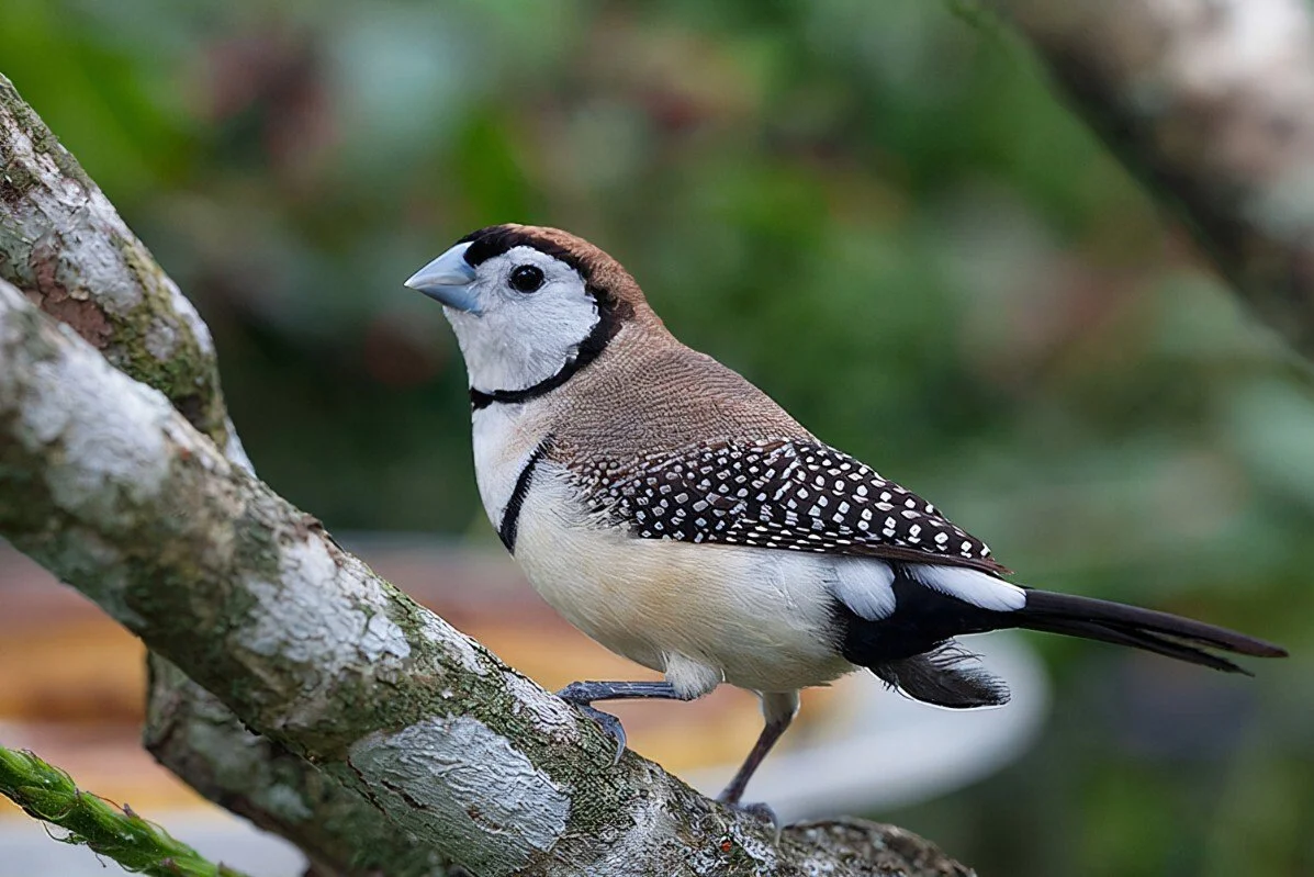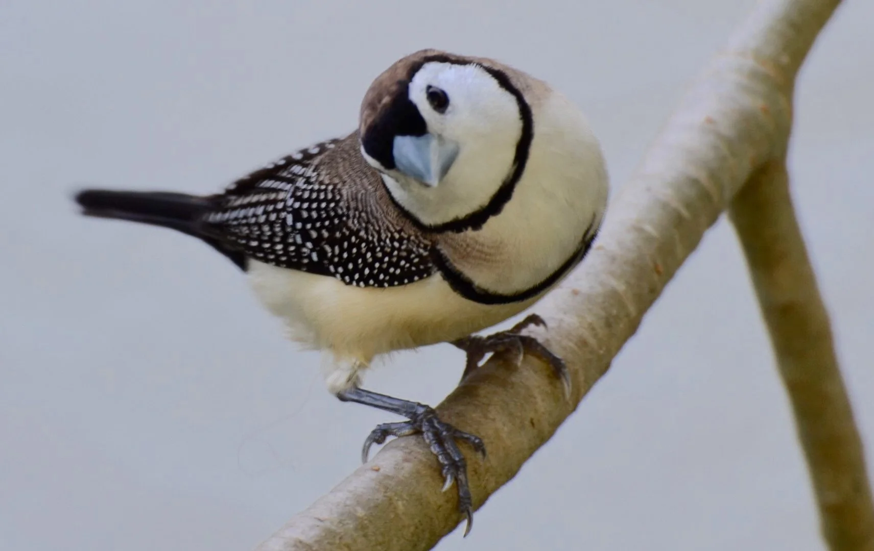 Calm and composed, an Owl Finch rests quietly on a branch, its soft markings blending with nature.